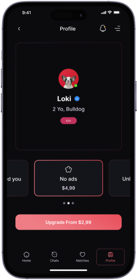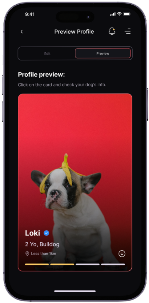 Customization without limitations is guaranteed with LUPPY. You can even create unique profiles and simulations to make your dog's matchmaking experience more personalized.