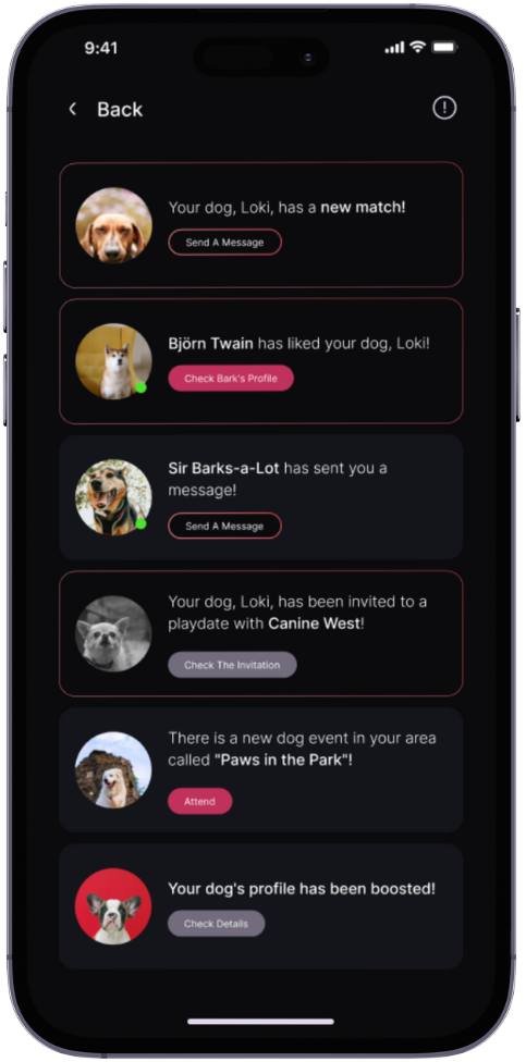 With AI functionality infused in the app, be ready for more precise matches. Our AI ensures that your dog meets the best companions, making playdates more enjoyable and stress-free.